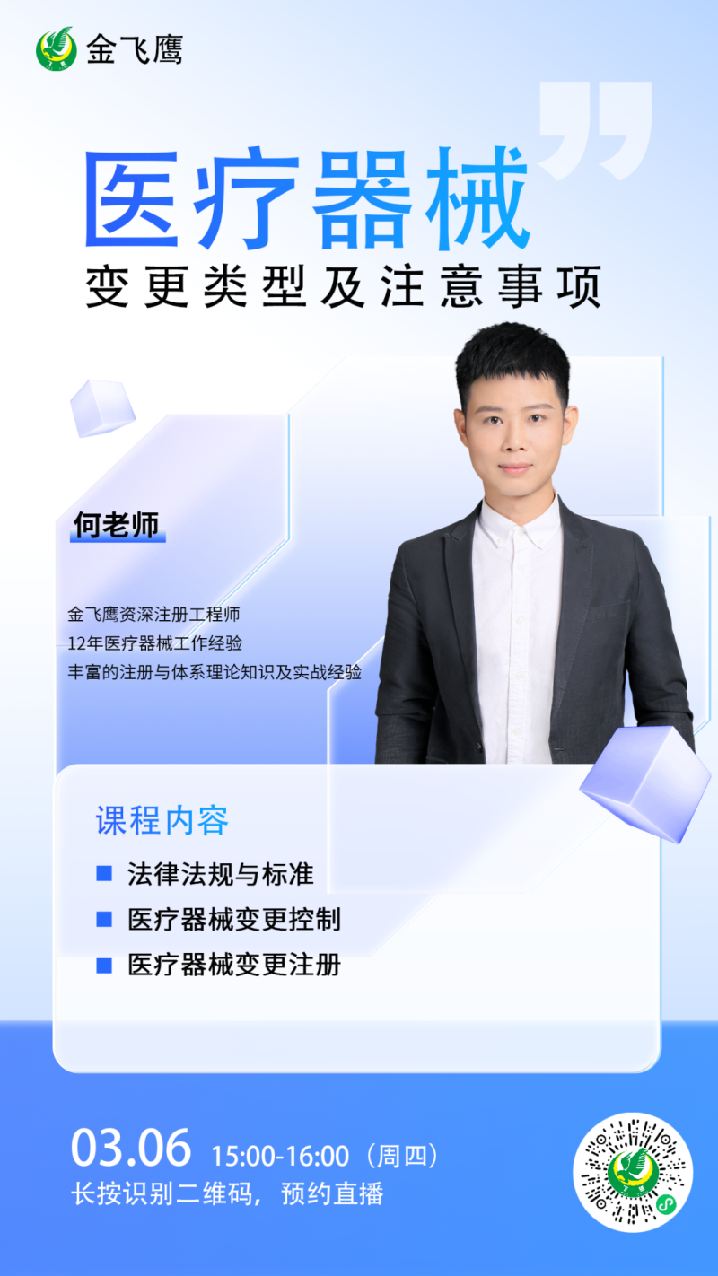 金飛鷹直播培訓,是每周一次的固定培訓欄目,優(yōu)選金飛鷹國內(nèi)外資深注冊/項目老師定期為大家講解醫(yī)療器械注冊相關知識,解答大家在醫(yī)療器械注冊過程中的諸多疑問。