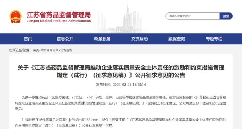 江蘇藥監(jiān)局:擬對(duì)“兩品一械”企業(yè)進(jìn)行質(zhì)量安全評(píng)級(jí)管理