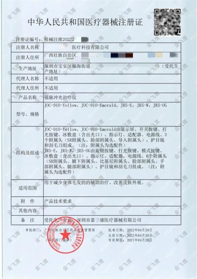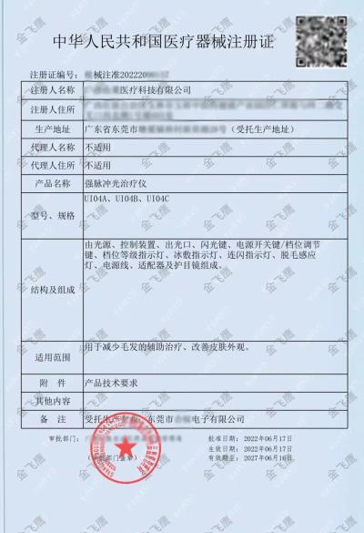 這兩大知名脫毛儀品牌,對(duì)應(yīng)的公司名稱分別為由萊和千譽(yù),而你知道他們的產(chǎn)品注冊(cè)證(以及生產(chǎn)許可證)是由誰(shuí)協(xié)助辦理的嗎?沒錯(cuò),就是我們——金飛鷹!(驕傲臉.jpg)