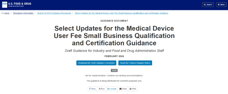 近日,F(xiàn)DA發(fā)布一份指南草案“Select Updates for the Medical Device User Fee Small Business Qualification and Certification Guidance,提議對(duì)原有《醫(yī)療器械用戶費(fèi)用、小企業(yè)資格和認(rèn)證》指南文件進(jìn)行更新。