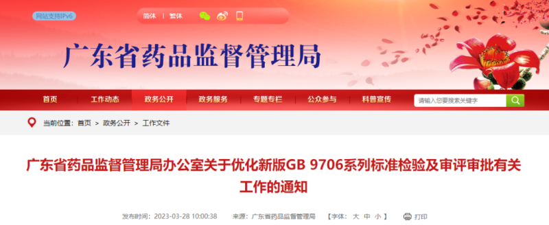 3月28日,廣東省藥監(jiān)局官網(wǎng)發(fā)布《關(guān)于優(yōu)化新版GB 9706系列標(biāo)準(zhǔn)檢驗(yàn)及審評審批有關(guān)工作的通知》(以下簡稱《通知》),就廣東省第二類醫(yī)療器械延續(xù)、變更注冊事項(xiàng)執(zhí)行新版標(biāo)準(zhǔn)有關(guān)事宜通知如下: