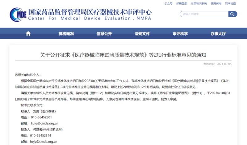 《醫(yī)療器械臨床試驗質(zhì)量技術(shù)規(guī)范》等2項行業(yè)標(biāo)準(zhǔn)征求意見中