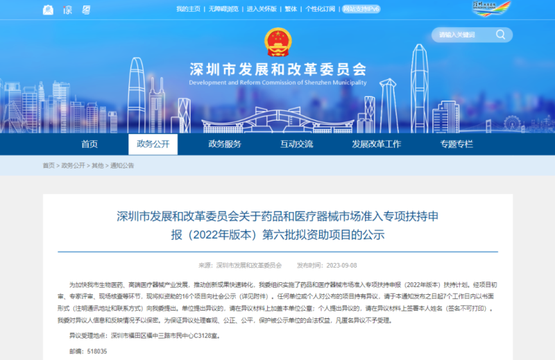 深圳又一批藥品和醫(yī)械市場準入專項資助項目公示,最高擬資助780多萬