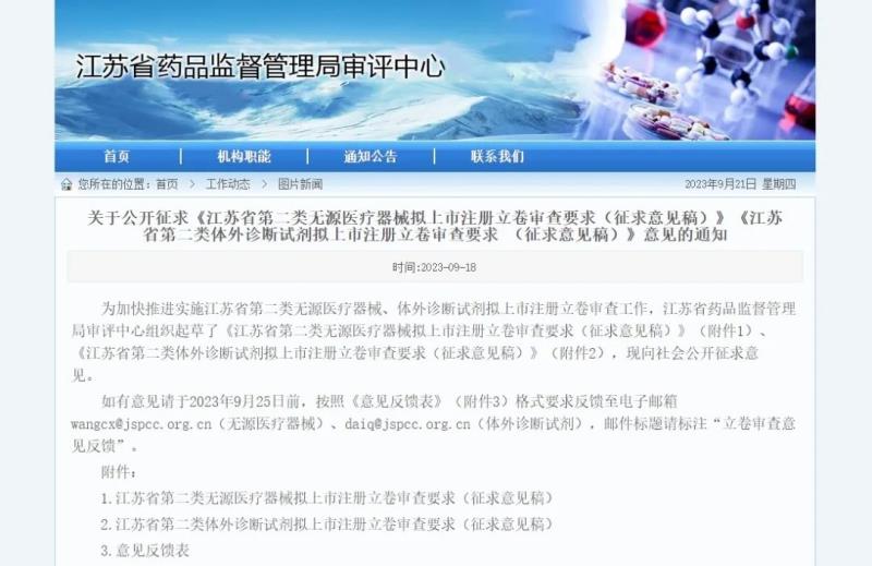 近日,江蘇省藥監(jiān)局審評中心發(fā)布《江蘇省第二類無源醫(yī)療器械擬上市注冊立卷審查要求(征求意見稿)》《江蘇省第二類體外診斷試劑擬上市注冊立卷審查要求 (征求意見稿)》,并向社會公開征求意見。