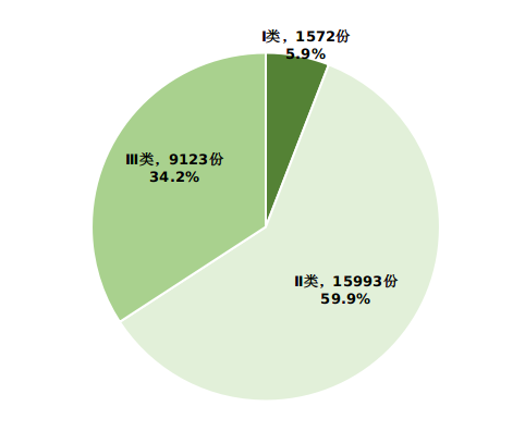 ? 附圖:涉及北京市醫(yī)療器械注冊(cè)人、備案人、進(jìn)口醫(yī)療器械代理人的報(bào)告按器械管理類別統(tǒng)計(jì)情況