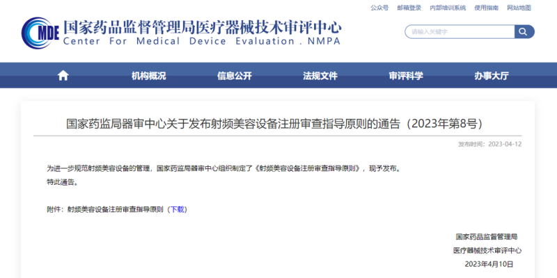 4月12日,國家藥監(jiān)局器審中心在原有征求意見稿基礎上正式發(fā)布《射頻美容設備注冊審查指導原則》,我們將部分重點內容摘錄如下: