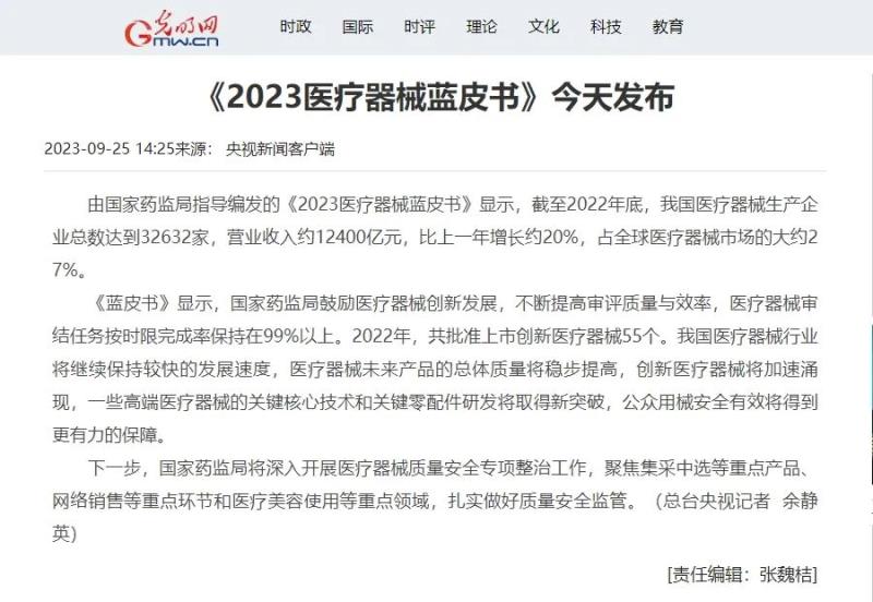 行業(yè)藍(lán)皮書(shū)發(fā)布!我國(guó)醫(yī)療器械企業(yè)去年?duì)I收約12400億元