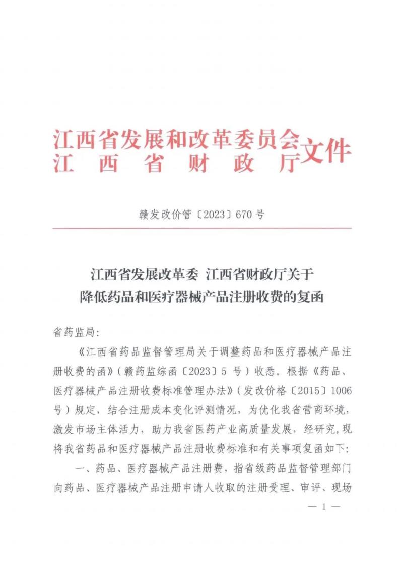 近日,江西省發(fā)展和改革委員會官網(wǎng)發(fā)布《江西省發(fā)展改革委江西省財政廳關(guān)于降低藥品和醫(yī)療器械產(chǎn)品注冊收費(fèi)的復(fù)函》,其中指出,藥品、醫(yī)療器械產(chǎn)品注冊收費(fèi)標(biāo)準(zhǔn)按現(xiàn)行規(guī)定標(biāo)準(zhǔn)的70%收取,調(diào)整后具體標(biāo)準(zhǔn)如下: