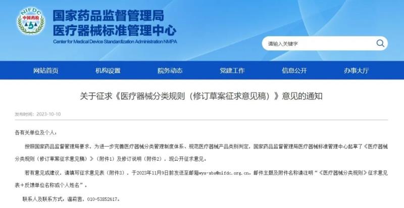 10月10日,國家藥監(jiān)局醫(yī)療器械標(biāo)管中心發(fā)布《醫(yī)療器械分類規(guī)則(修訂草案征求意見稿)》(以下簡稱《修訂草案》),并向社會公開征求意見。