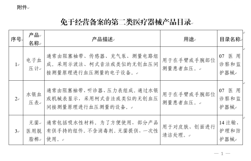 那么,具體哪些產(chǎn)品可以免于經(jīng)營備案呢?根據(jù)《國家藥監(jiān)局關于公布〈免于經(jīng)營備案的第二類醫(yī)療器械產(chǎn)品目錄〉的公告(2021年第86號)》,電子血壓計、水銀血壓表、無菌醫(yī)用脫脂棉、避孕套等13類第二類醫(yī)療器械產(chǎn)品可免于經(jīng)營備案,具體明細如下: