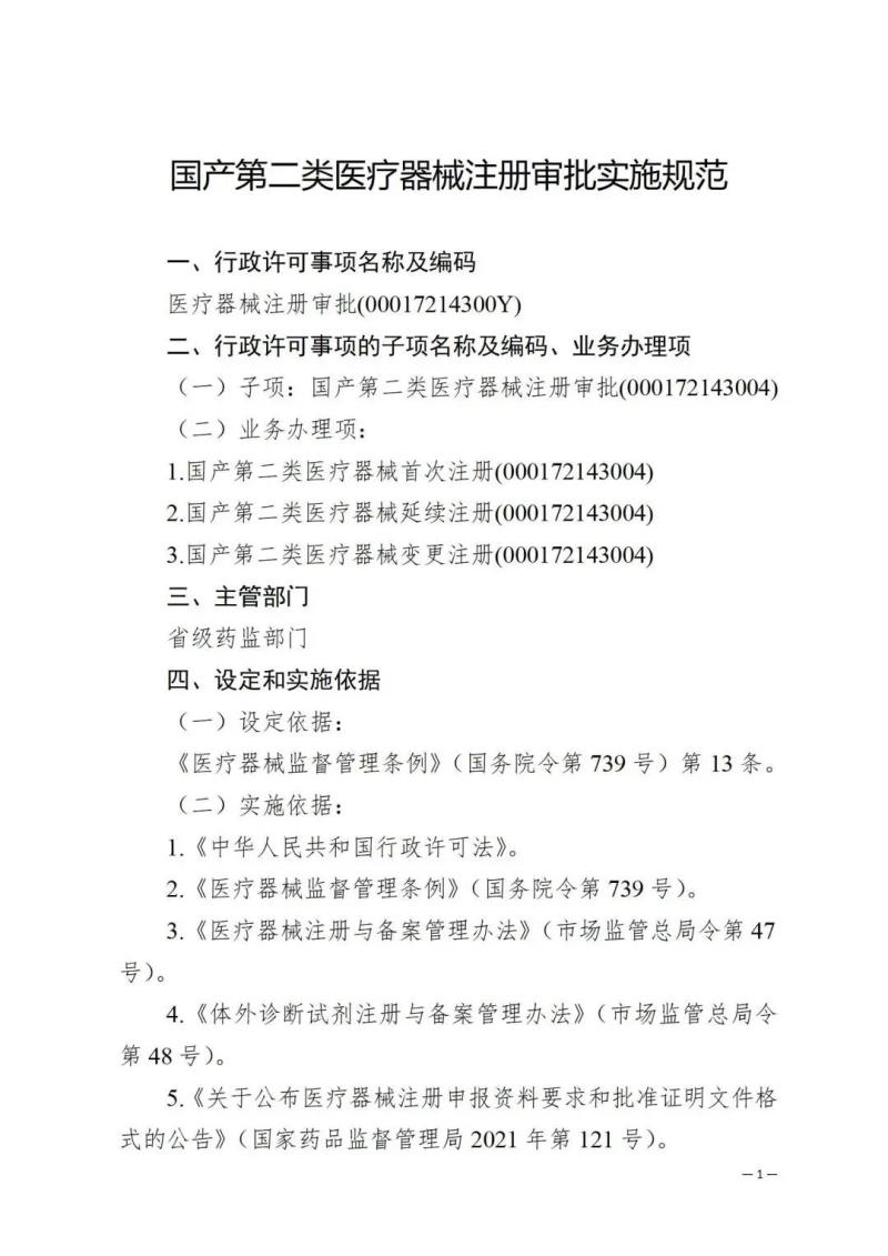 近日,湖南藥監(jiān)局官網(wǎng)發(fā)布省本級(jí)行政許可事項(xiàng)清單(2023年版)及實(shí)施規(guī)范(2023年版),共包括《國(guó)產(chǎn)第二類醫(yī)療器械注冊(cè)審批實(shí)施規(guī)范》、《第二、三類醫(yī)療器械生產(chǎn)許可實(shí)施規(guī)范》《藥品、醫(yī)療器械互聯(lián)網(wǎng)信息服務(wù)審批實(shí)施規(guī)范》等共計(jì)36項(xiàng)實(shí)施規(guī)范,我們將其中《國(guó)產(chǎn)第二類醫(yī)療器械注冊(cè)審批實(shí)施規(guī)范》轉(zhuǎn)載如下: