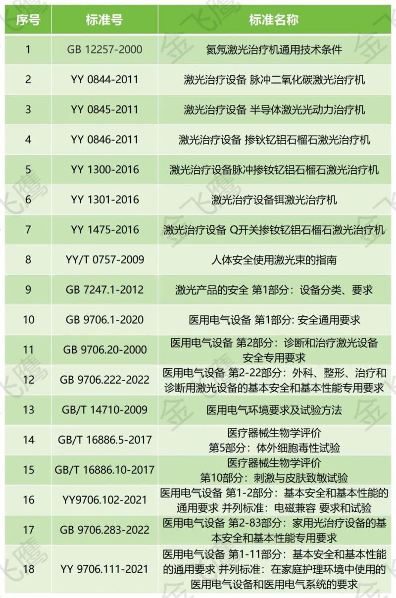 激光醫(yī)美產(chǎn)品的技術(shù)指標(biāo)可參考指導(dǎo)原則和相關(guān)的標(biāo)準(zhǔn)進(jìn)行制定,根據(jù)工作物質(zhì)性質(zhì)的不同有不同的產(chǎn)品標(biāo)準(zhǔn),參考標(biāo)準(zhǔn)清單大致如下: