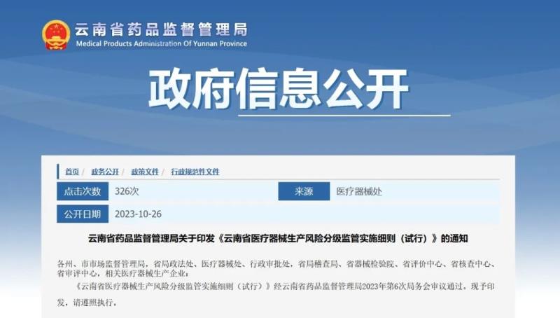 醫(yī)療器械生產(chǎn)風(fēng)險(xiǎn)如何分級(jí)監(jiān)管?云南藥監(jiān)局明確了!