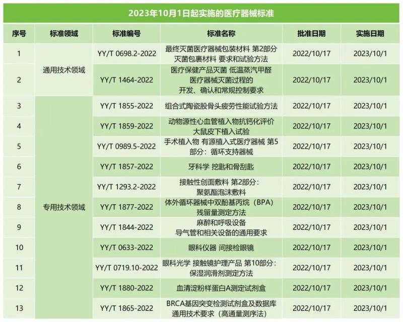 今天是10月1日,那么借此機會我們就將2023年10月1日起實施的13項醫(yī)療器械標(biāo)準(zhǔn)匯總到一起(包括2項通用技術(shù)領(lǐng)域標(biāo)準(zhǔn)及11項專業(yè)技術(shù)領(lǐng)域標(biāo)準(zhǔn)),小編辛苦整理,覺得有用別忘點贊+在看+轉(zhuǎn)發(fā)鼓勵一下哦~