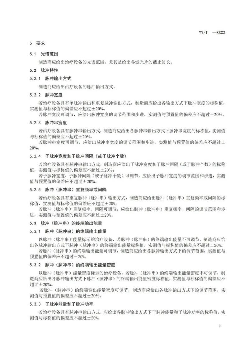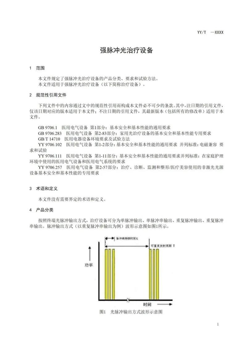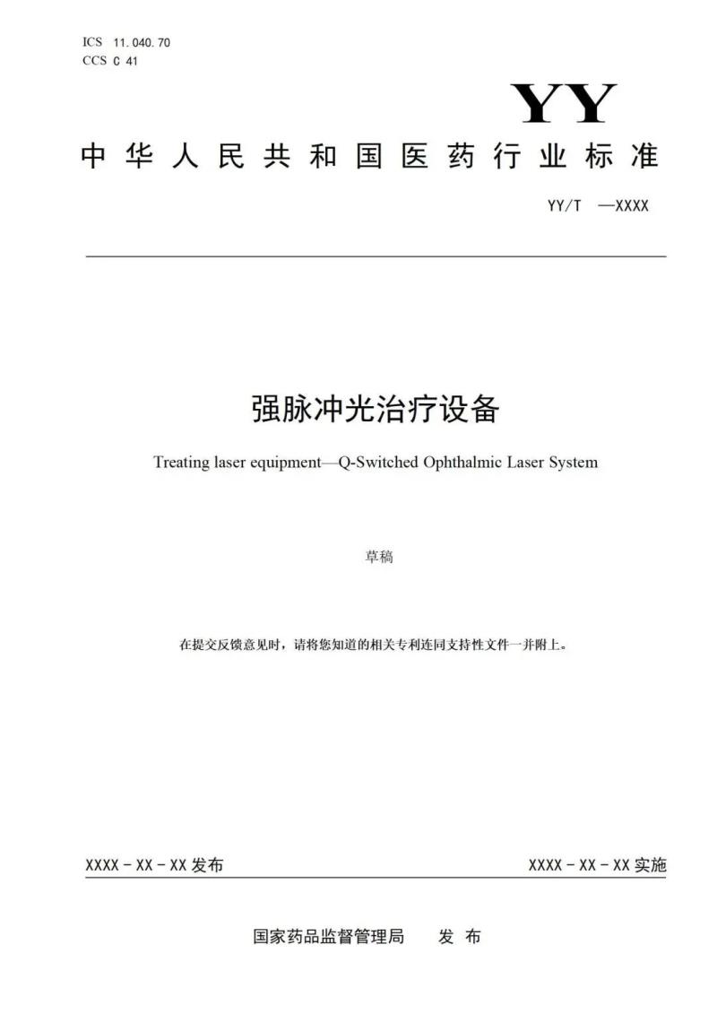 我們將其中《強(qiáng)脈沖光治療設(shè)備》標(biāo)準(zhǔn)草案轉(zhuǎn)載如下: