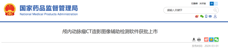 近日,國家藥品監(jiān)督管理局正式批準(zhǔn)了杭州深睿博聯(lián)科技有限公司研發(fā)的“顱內(nèi)動脈瘤CT造影圖像輔助檢測軟件”注冊申請。該軟件包含瀏覽器端和服務(wù)器端兩部分,專為頭頸動脈CT血管造影圖像的顯示、處理、測量和分析設(shè)計,特別針對顱內(nèi)3mm及以上的動脈瘤進行輔助檢測。