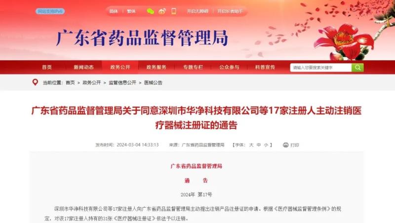 廣東藥監(jiān)局:以下17家企業(yè)已主動(dòng)注銷其醫(yī)療器械注冊(cè)證!