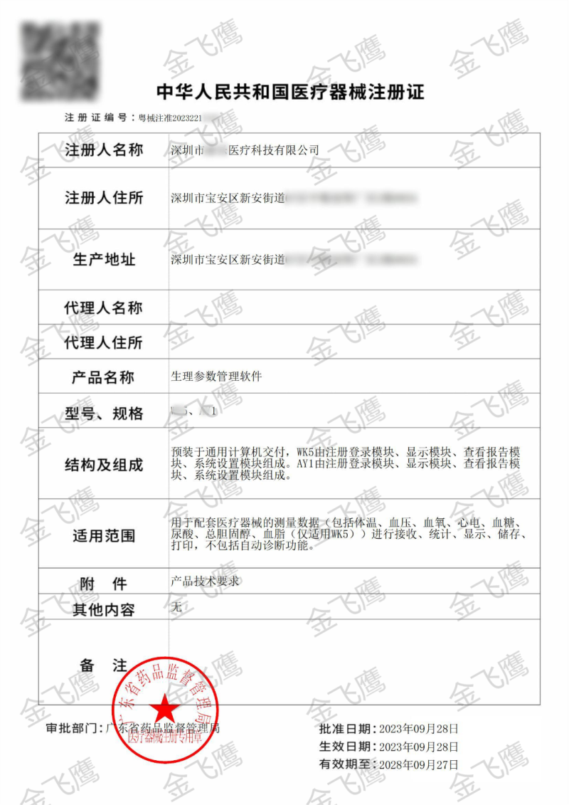 近年來,在金飛鷹的日常輔導(dǎo)過程中我們也明顯感覺到,咨詢醫(yī)用軟件注冊的客戶越來越多了。這不,近日,金飛鷹輔導(dǎo)的深圳一家企業(yè)成功取得了生理參數(shù)管理軟件(分類編碼:21-03)的注冊證,如下圖?