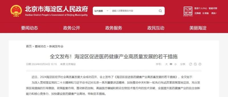 近日,北京市海淀區(qū)人民政府發(fā)布《海淀區(qū)促進(jìn)醫(yī)藥健康產(chǎn)業(yè)高質(zhì)量發(fā)展的若干措施》(以下簡稱《措施》),其中提到醫(yī)療器械領(lǐng)域的支持方向主要包括高端醫(yī)學(xué)影像軟件及設(shè)備、植介入器械及高值耗材、醫(yī)療機(jī)器人、先進(jìn)診療設(shè)備及生命支持設(shè)備、高端康復(fù)輔具及器材、體外診斷設(shè)備和試劑、基因檢測與合成設(shè)備、器官芯片、腦-機(jī)智能技術(shù)、人工智能醫(yī)用軟件、生物醫(yī)用材料等領(lǐng)域的研發(fā)、生產(chǎn)和服務(wù)。