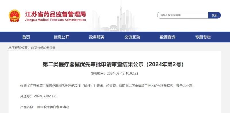兩款重組膠原蛋白產(chǎn)品被納入江蘇省醫(yī)療器械優(yōu)先注冊(cè)程序