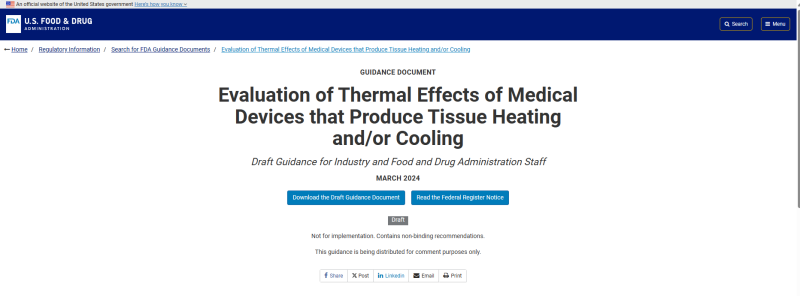 FDA(美國食品藥品監(jiān)督管理局)近日發(fā)布了一份重要的指南草案,專門針對那些能夠產(chǎn)生組織加熱和/或冷卻效應的醫(yī)療器械的熱效應評估進行了詳細闡述。