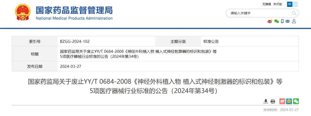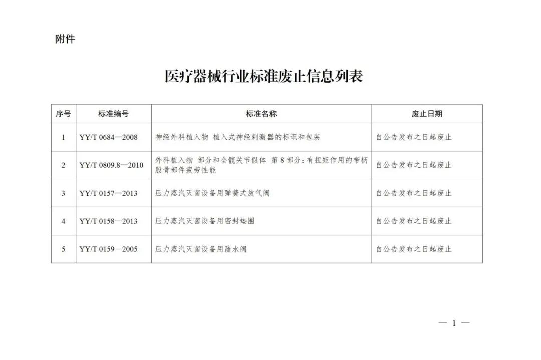 3月27日,國家藥監(jiān)局發(fā)布公告稱,廢止YY/T 0684-2008《神經(jīng)外科植入物 植入式神經(jīng)刺激器的標識和包裝》、YY/T 0157-2013《壓力蒸汽滅菌設備用彈簧式放氣閥》等5項醫(yī)療器械行業(yè)標準,具體明細如下;