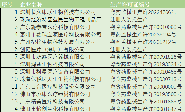 近期,廣東省藥品監(jiān)督管理局組織開展醫(yī)療器械生產(chǎn)企業(yè)監(jiān)督檢查,發(fā)現(xiàn)以下14家企業(yè)質(zhì)量管理體系存在嚴重缺陷,不符合《醫(yī)療器械生產(chǎn)質(zhì)量管理規(guī)范》相關(guān)規(guī)定,廣東省藥品監(jiān)督管理局已依法采取責令暫停生產(chǎn)的控制措施。