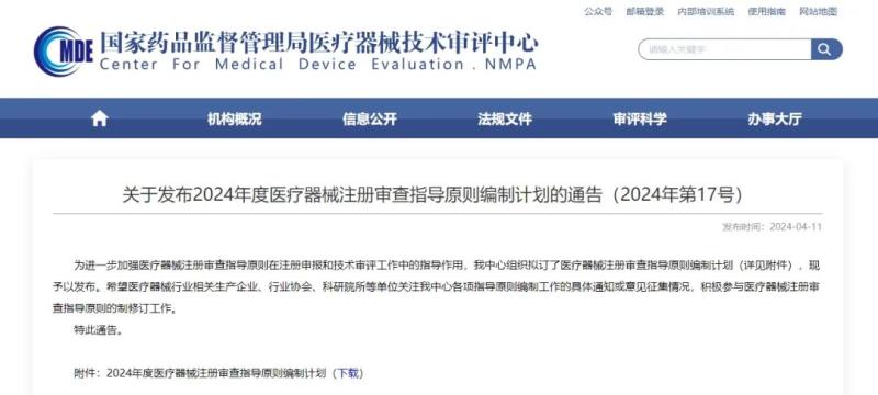 2024年,器審中心擬制修訂109項醫(yī)療器械注冊審查指導原則