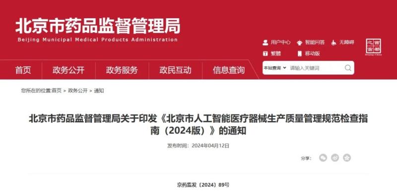 《北京市人工智能醫(yī)療器械生產(chǎn)質(zhì)量管理規(guī)范檢查指南》發(fā)布