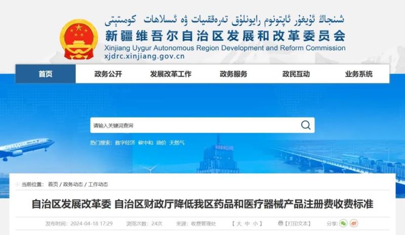 4月18日,新疆維吾爾自治區(qū)發(fā)展和改革委員會同自治區(qū)財政廳印發(fā)《關(guān)于調(diào)整藥品醫(yī)療器械產(chǎn)品注冊費收費標(biāo)準(zhǔn)的通知》,明確自2024年4月29日起,取消藥品補(bǔ)充申請注冊費,藥品再注冊費由22284元/次降為1200元/次,境內(nèi)第二類醫(yī)療器械產(chǎn)品首次注冊費由70434元/次降為2800元/次、變更注冊費由29484元/次降為2400元/次、延續(xù)注冊費由29250元/次降為1200元/次。同時,按照國家要求,對與新型冠狀病毒防控相關(guān)的藥品和醫(yī)療器械產(chǎn)品免征注冊費,執(zhí)行期限延長至2027年12月31日。