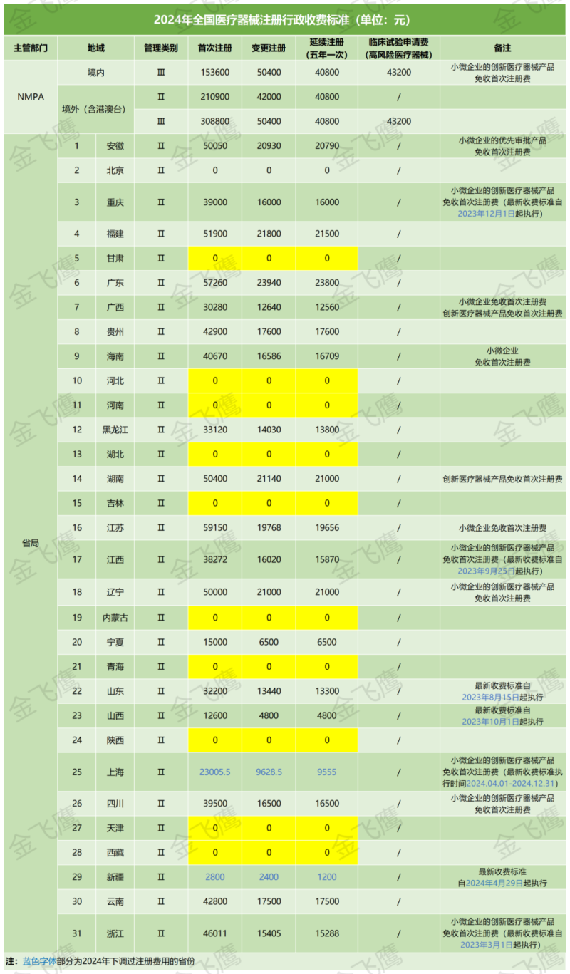 ※有變化!2024年最新全國各省醫(yī)療器械注冊行政收費標(biāo)準(zhǔn)
