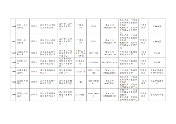 4月22日,廣東藥監(jiān)局發(fā)布《關(guān)于醫(yī)療器械抽查檢驗(yàn)信息的通告(2024年第1期,總第86期)》,我們通過(guò)查看通告中的附件發(fā)現(xiàn),本次共抽查檢驗(yàn)了1121批次產(chǎn)品,其中有37批次不符合規(guī)定,包括弱視綜合治療儀、半導(dǎo)體激光治療儀、注射泵、臂式電子血壓計(jì)等產(chǎn)品,不符合規(guī)定產(chǎn)品具體明細(xì)如下: