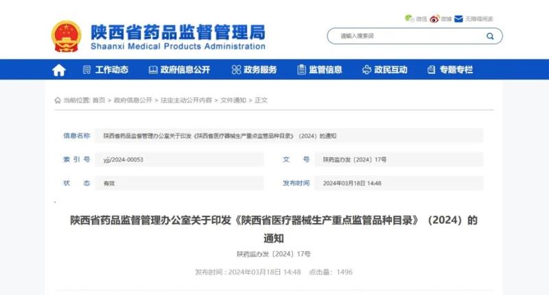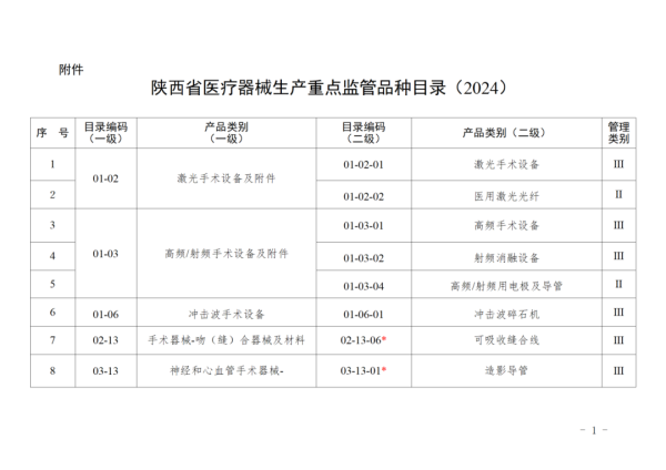 陜西藥監(jiān)局公布2024年醫(yī)療器械生產(chǎn)重點(diǎn)監(jiān)管目錄