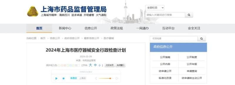 近日,上海市藥監(jiān)局發(fā)布《2024年上海市醫(yī)療器械安全行政檢查計劃》,其中提到檢查對象為本市轄區(qū)內(nèi)醫(yī)療器械生產(chǎn)企業(yè)。必要時依法可開展延伸檢查。其他相關(guān)信息如下: