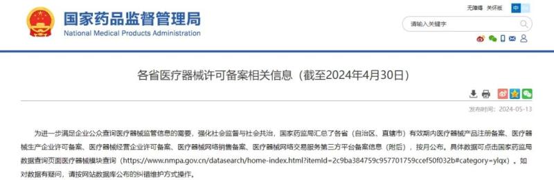 5月13日,國家藥監(jiān)局公布了截至2024年4月30日各省有效期內(nèi)醫(yī)療器械產(chǎn)品注冊備案、醫(yī)療器械生產(chǎn)企業(yè)許可備案等信息,老規(guī)矩,金飛鷹小編對此稍作編輯,標(biāo)注紅色、綠色、黃色的分別為前三甲。