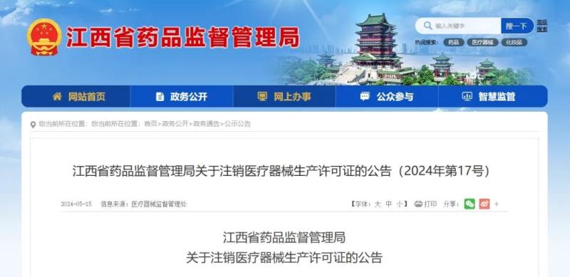 注銷公告 醫(yī)療器械生產(chǎn)許可證 省市局動態(tài)