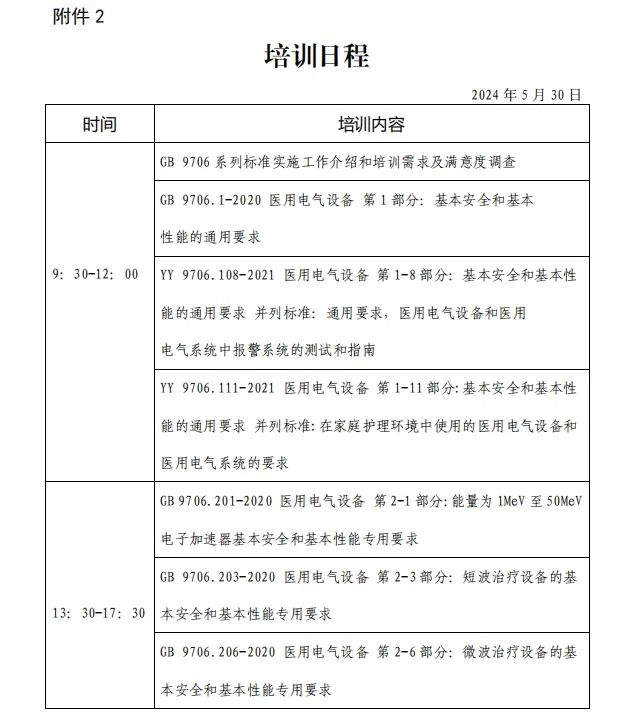 培訓時間:2024年5月30日,9:30~17:00 會議通過網(wǎng)絡會議的方式(#騰訊會議號:814-543-839),可識別以下二維碼報名。 本次標準宣貫的培訓日程如下: 邀請標準起草人員和資深檢驗工程師對標準進行宣貫。 有源醫(yī)用電氣設備相關領域從事設計、研發(fā)、技術管理、產(chǎn)品注冊等技術人員,行業(yè)監(jiān)管、技術審評及檢測機構等相關人員。