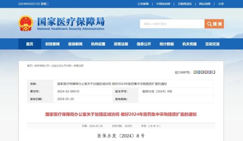 5月20日,國家醫(yī)療保障局發(fā)布《關(guān)于加強(qiáng)區(qū)域協(xié)同做好2024年醫(yī)藥集中采購提質(zhì)擴(kuò)面的通知》(以下簡(jiǎn)稱《通知》),對(duì)2024年集中采購工作的關(guān)鍵任務(wù)和政策要求進(jìn)行了系統(tǒng)部署。
