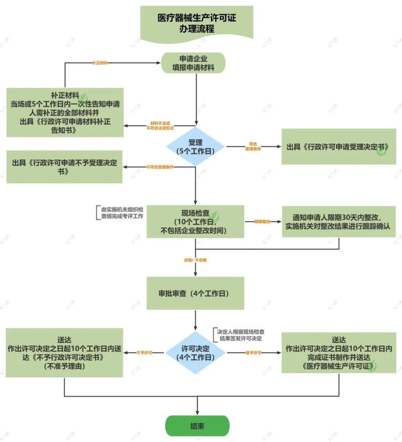 《醫(yī)療器械生產(chǎn)監(jiān)督管理辦法》規(guī)定,“從事第二類、第三類醫(yī)療器械生產(chǎn)活動,應(yīng)當經(jīng)所在地省、自治區(qū)、直轄市藥品監(jiān)督管理部門批準,依法取得醫(yī)療器械生產(chǎn)許可證;從事第一類醫(yī)療器械生產(chǎn)活動,應(yīng)當向所在地設(shè)區(qū)的市級負責藥品監(jiān)督管理的部門辦理醫(yī)療器械生產(chǎn)備案?!?/span> 首先,生產(chǎn)許可證的辦理要分兩種情況: 一、假如是普通注冊流程,即注冊申請人和生產(chǎn)企業(yè)為同一企業(yè),生產(chǎn)許可證在注冊證獲取后,由注冊證持有企業(yè)申請辦理; 二、在注冊人制度下,醫(yī)療器械注冊證和生產(chǎn)許可證實現(xiàn)了“解綁”,也就是說,符合條件的醫(yī)療器械注冊申請人可以單獨申請醫(yī)療器械注冊證,然后委托給有資質(zhì)和生產(chǎn)能力的生產(chǎn)企業(yè)。那么此時,生產(chǎn)許可證則在注冊證獲取后,由被委托企業(yè)申請辦理。 那接下來,我們再聊一聊醫(yī)療器械生產(chǎn)許可證的申請條件、申請材料及辦理流程。 1)有與生產(chǎn)的醫(yī)療器械相適應(yīng)的生產(chǎn)場地、環(huán)境條件、生產(chǎn)設(shè)備以及專業(yè)技術(shù)人員; 2)有能對生產(chǎn)的醫(yī)療器械進行質(zhì)量檢驗的機構(gòu)或者專職檢驗人員以及檢驗設(shè)備; 3)有保證醫(yī)療器械質(zhì)量的管理制度; 4)有與生產(chǎn)的醫(yī)療器械相適應(yīng)的售后服務(wù)能力; 5)符合產(chǎn)品研制、生產(chǎn)工藝文件規(guī)定的要求。 辦理醫(yī)療器械生產(chǎn)許可證所需的材料如下(以廣東省政務(wù)網(wǎng)公布的為例): 《醫(yī)療器械生產(chǎn)許可核發(fā)申請表》 所生產(chǎn)的醫(yī)療器械注冊證以及產(chǎn)品技術(shù)要求復(fù)印件 法定代表人、企業(yè)負責人的身份證明,學歷證明或職稱證明、任命文件的復(fù)印件和工作簡歷 生產(chǎn)、質(zhì)量和技術(shù)負責人的身份、學歷、職稱復(fù)印件 生產(chǎn)管理、質(zhì)量檢驗崗位從業(yè)人員學歷、職稱一覽表 生產(chǎn)場地證明文件,包括房產(chǎn)證明或租賃協(xié)議和出租方的房產(chǎn)證明的復(fù)印件;廠區(qū)總平面圖,主要生產(chǎn)車間布置圖,有潔凈要求的車間,需提供潔凈室的合格檢測報告復(fù)印件,標明功能間及人物流動走向 主要生產(chǎn)設(shè)備及檢驗儀器清單 生產(chǎn)質(zhì)量管理規(guī)范文件(包括質(zhì)量手冊和程序文件)目錄 產(chǎn)品的工藝流程圖,并注明主要控制項目和控制點,包括關(guān)鍵和特殊工序的設(shè)備,人員及工藝參數(shù)控制的說明 證明售后服務(wù)能力的材料 經(jīng)辦人的授權(quán)文件