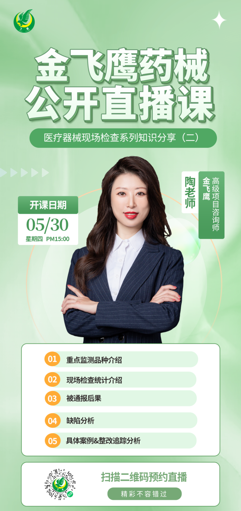 往期直播培訓(xùn)課程支持回放,關(guān)注“金飛鷹藥械咨詢服務(wù)”視頻號并點擊視頻號主頁,即可查看“直播回放”哦~