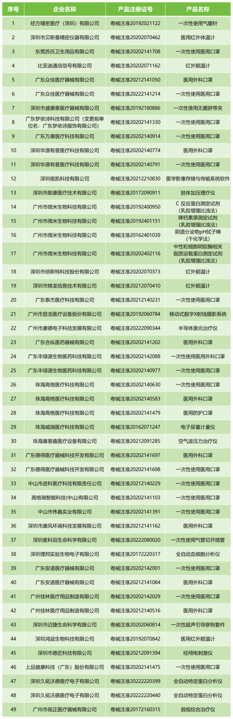 5月29日,廣東藥監(jiān)局發(fā)布通告稱,深圳市貝斯曼精密儀器有限公司、比亞迪通信信號(hào)有限公司等26家注冊(cè)人向廣東省藥品監(jiān)督管理局主動(dòng)提出注銷產(chǎn)品注冊(cè)證的申請(qǐng),我們通過(guò)查看附件發(fā)現(xiàn),注銷產(chǎn)品以醫(yī)用口罩居多,還有醫(yī)用紅外體溫計(jì)、半導(dǎo)體激光治療儀、空氣波壓力治療儀、弱視綜合治療儀等共49款產(chǎn)品。具體清單如下: