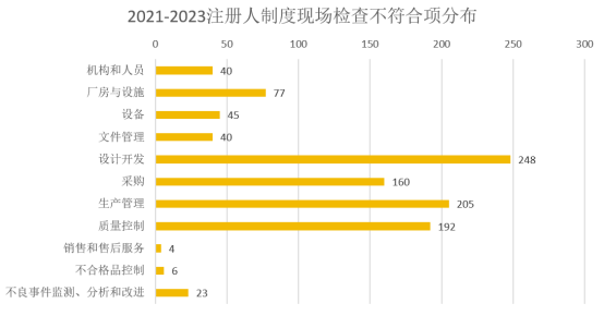 ↑ 2021-2023年注冊人制度現(xiàn)場檢查不符合項(xiàng)分布