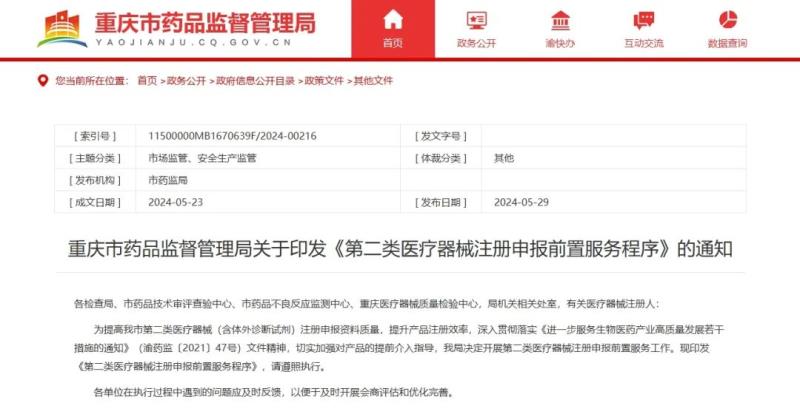 為提高我市第二類醫(yī)療器械(含體外診斷試劑)注冊(cè)申報(bào)資料質(zhì)量,提升產(chǎn)品注冊(cè)效率,深入貫徹落實(shí)《進(jìn)一步服務(wù)生物醫(yī)藥產(chǎn)業(yè)高質(zhì)量發(fā)展若干措施的通知》(渝藥監(jiān)〔2021〕47號(hào))文件精神,切實(shí)加強(qiáng)對(duì)產(chǎn)品的提前介入指導(dǎo),我局決定開展第二類醫(yī)療器械注冊(cè)申報(bào)前置服務(wù)工作。