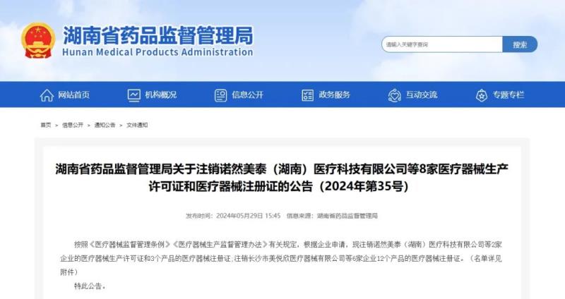 近日,湖南省藥監(jiān)局發(fā)布一則注銷公告,其中提到,按照《醫(yī)療器械監(jiān)督管理條例》《醫(yī)療器械生產(chǎn)監(jiān)督管理辦法》有關(guān)規(guī)定,根據(jù)企業(yè)申請,該局已注銷諾然美泰(湖南)醫(yī)療科技有限公司等2家企業(yè)的醫(yī)療器械生產(chǎn)許可證和3個產(chǎn)品的醫(yī)療器械注冊證;注銷長沙市美悅欣醫(yī)療器械有限公司等6家企業(yè)12個產(chǎn)品的醫(yī)療器械注冊證。我們通過查看附件發(fā)現(xiàn),本次注銷的產(chǎn)品中有多款重組膠原蛋白產(chǎn)品,比如重組膠原蛋白溶液、重組膠原蛋白凝膠、重組膠原蛋白液體敷料等,具體明細如下: