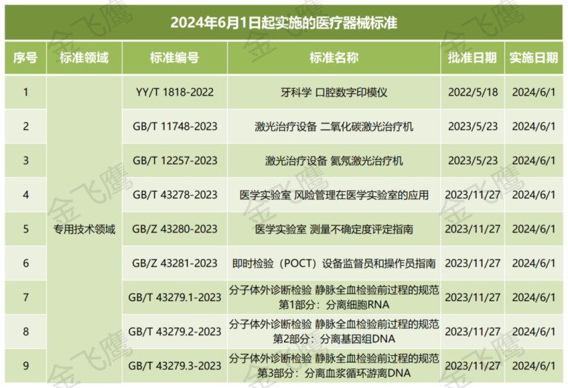 6月第一個工作日,又來跟大家盤點一波醫(yī)療器械標準實施動態(tài):自2024年6月1日起正式實施的共有9項醫(yī)療器械標準,其中包括YY/T 1818-2022《牙科學 口腔數(shù)字印模儀》、GB/T 11748-2023《激光治療設備 二氧化碳激光治療機》、GB/T 12257-2023《激光治療設備 氦氖激光治療機》等,具體明細如下: