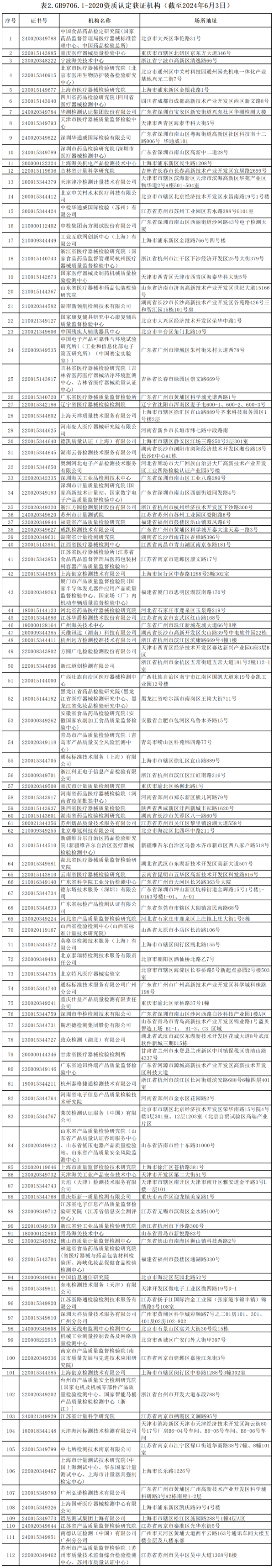 ↑ GB 9706.1-2020資質(zhì)認定獲證機構(gòu)明細