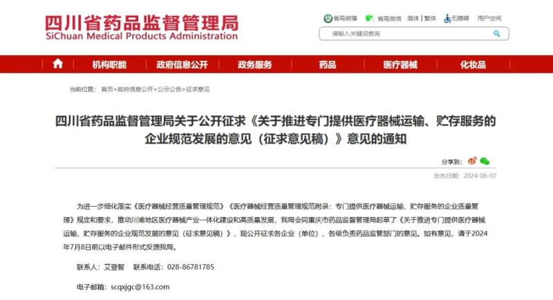 為了保障公眾依法獲取專門(mén)提供醫(yī)療器械運(yùn)輸、貯存服務(wù)的企業(yè)相關(guān)信息,提高行業(yè)和監(jiān)管透明度,構(gòu)建川渝醫(yī)療器械一體化監(jiān)管模式,《意見(jiàn)(征求意見(jiàn)稿)》規(guī)定設(shè)區(qū)的市級(jí)藥品監(jiān)管部門(mén)要及時(shí)公布專門(mén)提供醫(yī)療器械運(yùn)輸、貯存服務(wù)的企業(yè)相關(guān)信息,并細(xì)化明確了藥品監(jiān)管部門(mén)相關(guān)許可和監(jiān)管事項(xiàng)。