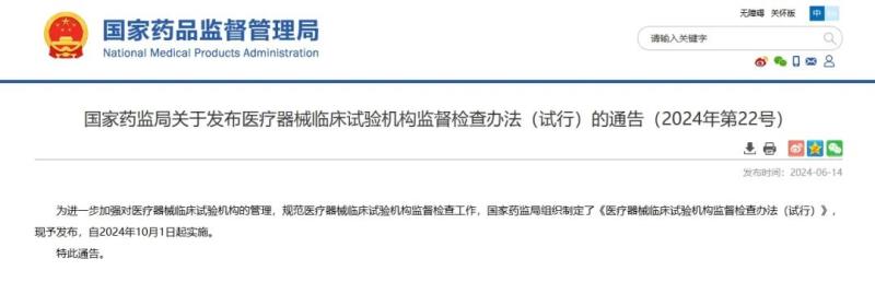 近日,國家藥監(jiān)局組織發(fā)布《醫(yī)療器械臨床試驗(yàn)機(jī)構(gòu)監(jiān)督檢查辦法(試行)》(以下簡稱《辦法》),并宣布2024年10月1日起實(shí)施。