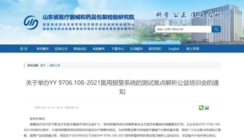 6月20日,山東省醫(yī)療器械和藥品包裝檢驗(yàn)研究院發(fā)布通知稱,該院定于2024年6月27日舉辦YY 9706.108-2021醫(yī)用報(bào)警系統(tǒng)的測(cè)試難點(diǎn)解析公益培訓(xùn)會(huì),此次培訓(xùn)為線上培訓(xùn),省內(nèi)外相關(guān)單位均可報(bào)名參加。會(huì)議相關(guān)事宜具體如下: