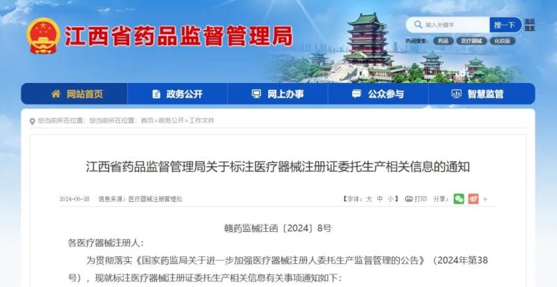 近日,繼江蘇省、湖北省、廣東省、湖南省、廣西壯族自治區(qū)、云南省、吉林省(具體政策可點(diǎn)擊右側(cè)鏈接回顧→醫(yī)療器械委托生產(chǎn)信息標(biāo)注)后,江西省藥監(jiān)局也發(fā)布了《關(guān)于標(biāo)注醫(yī)療器械注冊證委托生產(chǎn)相關(guān)信息的通知》,相關(guān)事項(xiàng)具體如下: